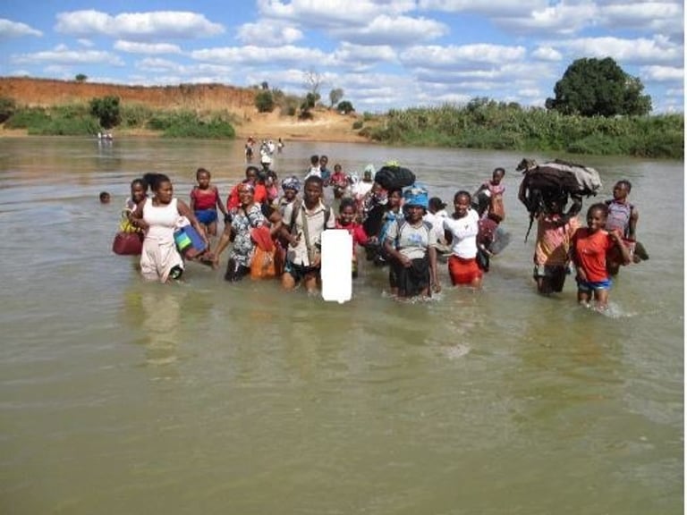 Dans la région de Port-Bergé (Nord-Ouest de Madagascar), le fleuve Sofia coupe désormais plusieurs villages de leurs champs, de leurs écoles et de leur commune à cause du changement de son cours.