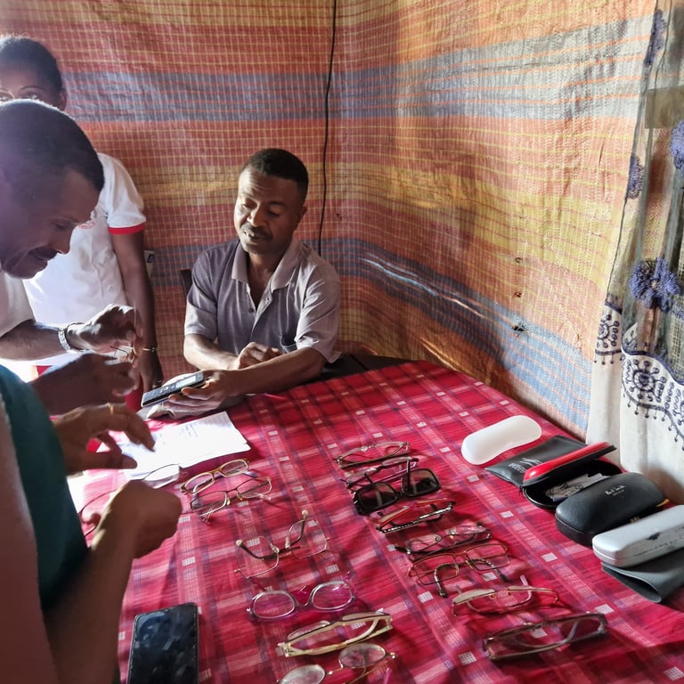 Grâce à la générosité de notre partenaire LISSAC, opticien à Verneuil-sur-Seine, nous collectons toute l'année des lunettes de vue que nous distribuons aux plus démunis.