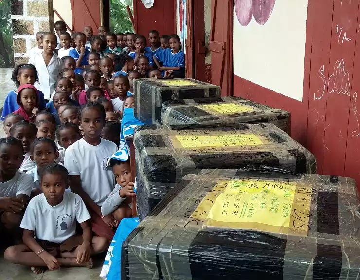 Distribution de fournitures scolaires et de matériels informatiques,